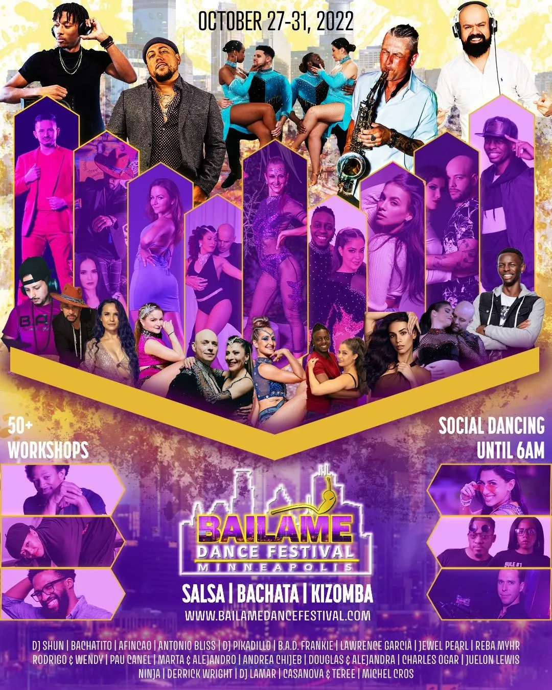 Bailame Dance Festival is a 3 day salsa-bachata-kizomba dance festival located in Minneapolis, MN.